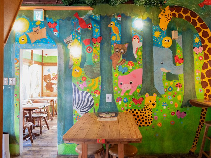 Cute, “kawaii” atmosphere where you can relax and enjoy kawaii sweets, pizza, and more awaits you in Koenji, Tokyo! Hattifnatt is the name of a cute café on Azuma Dori Street, only about a 4-minute walk from Koenji Station, where you will feel as though you‘ve entered a fairytale-treehouse café. You will crouch your way through the hobbit-sized door and climb a ladder before you can even order your latte! The atmosphere is very cozy with the colorful forest animal murals and log-cabin-esque décor. There is even a loft space!